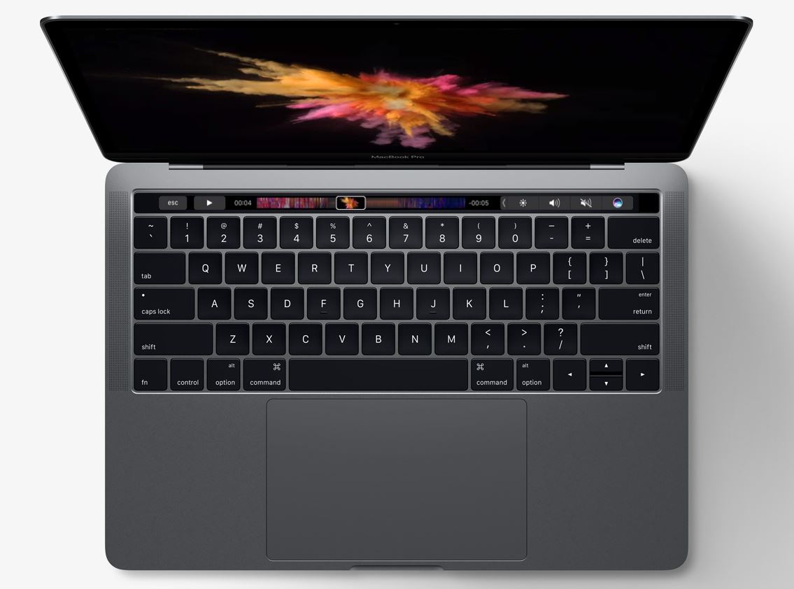 Die Touch Bar ist eine Display-Leiste oberhalb der Tastatur, welche die Funktionstasten ersetzen und standardmäßig diverse Systemfunktionen, wie Lautstärke, Helligkeit, aber auch einen extra Siri-Button anzeigen wird. Die Touch-Leiste soll sich aber auch vom Benutzer flexibel mit eigenen Buttons gestalten lassen. Softwareentwickler können die Touchleiste auch in ihre eigenen Programme integrieren, was unter anderem mit Photoshop und Final Cut Pro demonstriert wurde. Zudem wird in dem Power-Button, der ebenfalls in die Touch Bar integriert ist, ein Fingerabdruckscanner verbaut. Dieser wird von einem extra verbauten Chip, dem T1 Chip, betrieben um bestmögliche Sicherheit und Funktionalität zu gewährleisten.