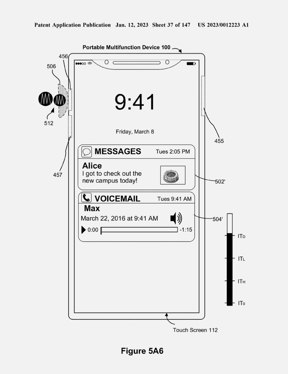 Apple hat die neuen Taptic Buttons nun beim United States Patent & Trademark Office patentiert, und dabei mehrere Features beschrieben, welche durch berührungsempfindliche Knöpfe an der linken und rechten Seite eines iPhones ermöglicht werden würden. So kann beispielsweise das Display durch eine leichte Berührung eines Buttons aktiviert werden, mit minimal mehr Druck werden die Benachrichtigungen dargestellt, übt der Nutzer noch mehr Druck aus, kann die letzte Benachrichtigung geöffnet oder auch eine eingehende Sprachnachricht abgespielt werden – all das, ohne den Touchscreen berühren zu müssen.