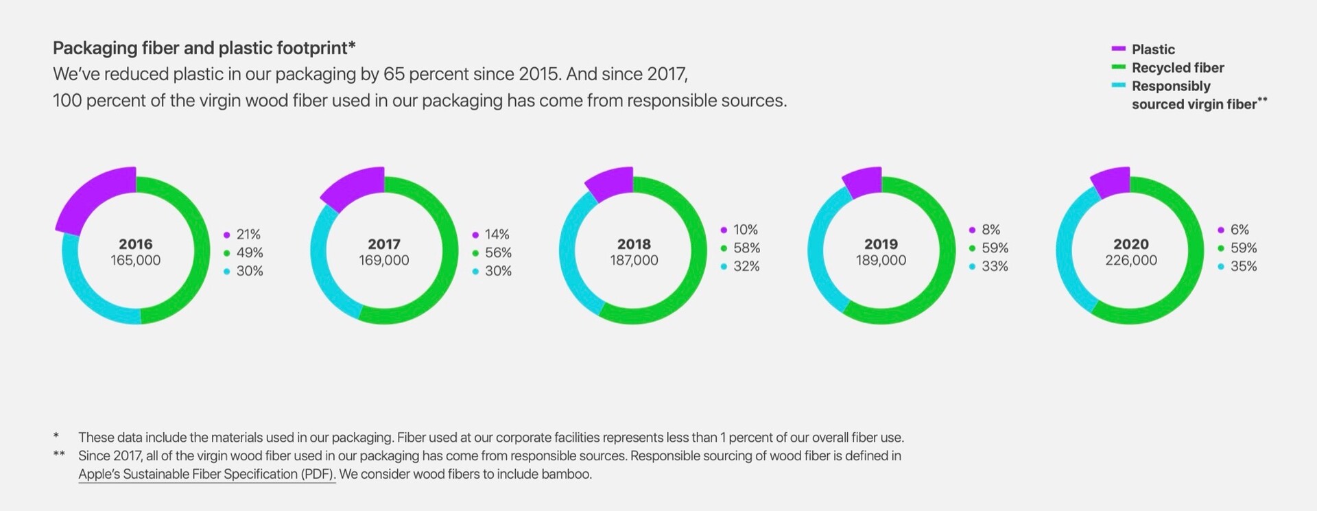 In Apples jüngstem Umweltbericht gibt der Konzern einen tiefen Einblick in die Umweltpolitik des Unternehmens. Neben dem etwas kontroversen Schritt, das iPhone 12 (ca. 830 Euro auf Amazon) komplett ohne ein Netzteil oder Ohrhörer auszuliefern, gibt es im Bericht auch Informationen zu weniger kontroversen, aber ebenso umweltfreundlichen Maßnahmen. So werden etwa das Display des iPhone und das Gehäuse der Apple Watch durch ein Stück Papier statt zuvor durch eine Plastikfolie geschützt.
