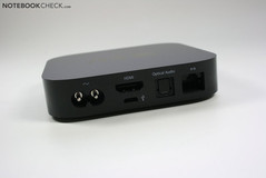 An Schnittstellen bietet das Apple TV HDMI für Bild und Ton, einen mini USB Anschluss (bisher nicht genutzt), optischen Audio Ausgang, drahtgebundene 10/100 LAN Schnittstelle und intern auch ein 801.11abgn WLAN Interface (zum Video Streamen wird a, g oder n benötigt).