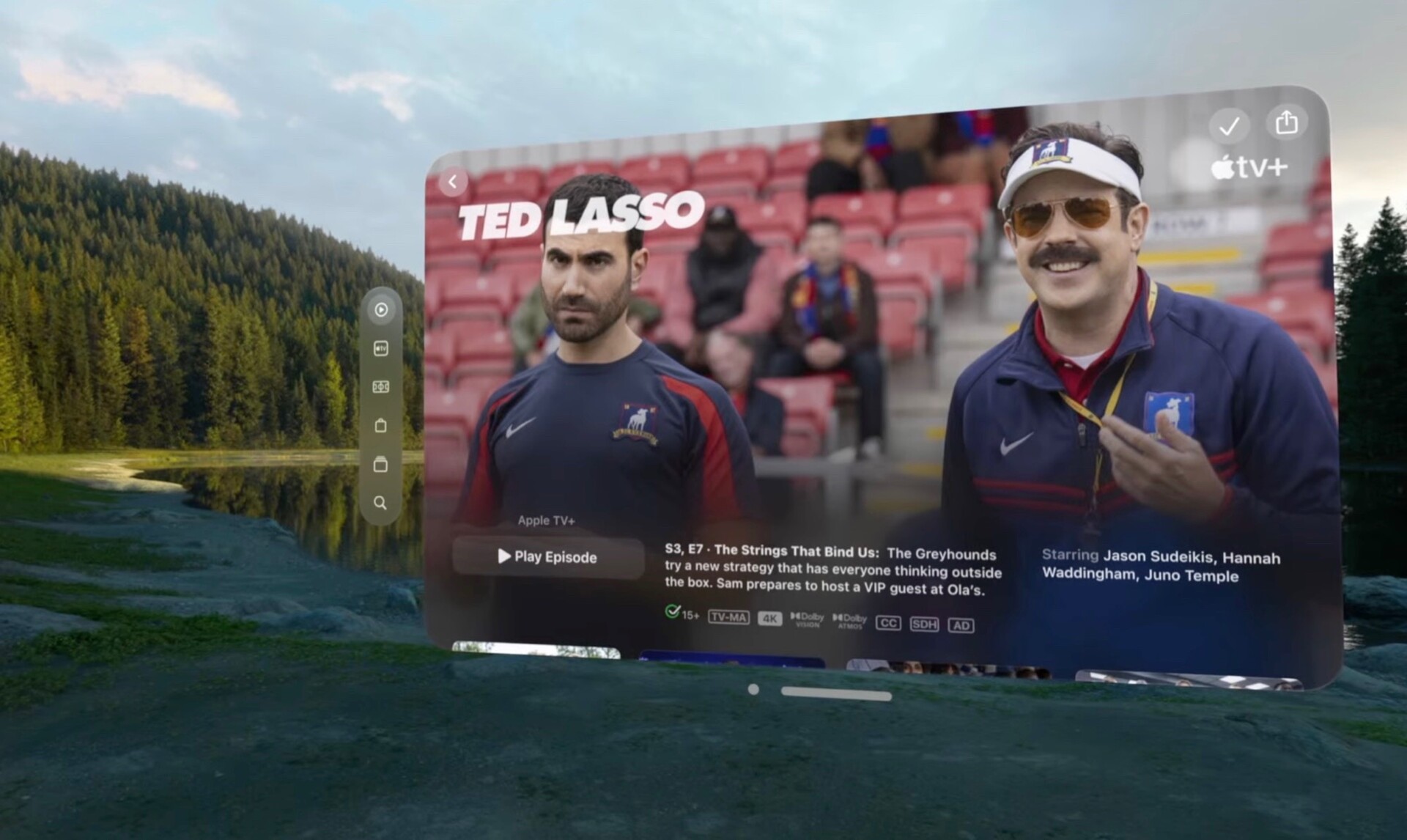 Wird eine App geöffnet, erscheint ein schwebendes Fenster, das frei im Raum platziert, in der Größe angepasst oder sogar gestapelt werden kann. Vision Pro erlaubt es, die Umgebung weiterhin zu sehen, selbst während das Headset getragen wird. Mit Apple Music, dem Safari Web-Browser und Freeform bietet Vision Pro schon zum Launch eine Reihe nützlicher Apps.