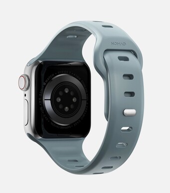 Das Nomad Sport Slim Band soll dabei ebenso wasserfest und leicht zu reinigen sein wie das Sportarmband von Apple, das Design bietet laut dem Hersteller aber einige Vorzüge. Allen voran verlaufen pillenförmige Aussparungen über die gesamte Länge des Armbandes. Diese dienen der Belüftung, sodass sich beim Sport weniger Schweiß unter dem Armband bildet. Clever: Dieselben Öffnungen werden auch für die Schließe genutzt.