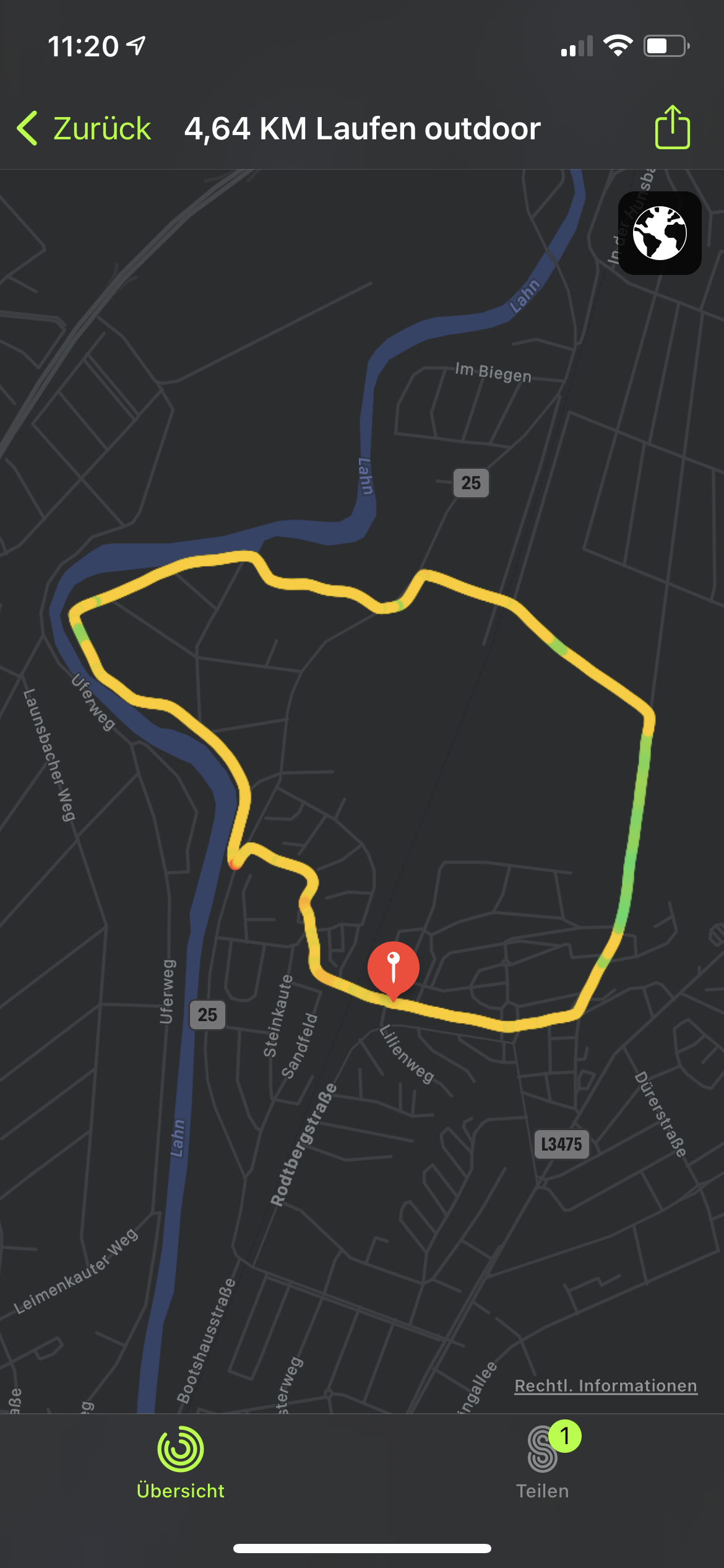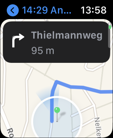 Ist das integrierte GPS aktiv und gleichzeitig die Aufzeichnung der Herzfrequenz, hält der Akku laut Apple bis zu sieben Stunden respektive sechs bei der Apple Watch Series 6 mit LTE. Ist die Apple Watch mit dem iPhone verbunden, nutzt sie dessen GPS. Daher kann man, wenn das iPhone dabei ist, auch längere Outdoor-Aktivitäten mit Navigation oder Routenaufzeichnung planen.