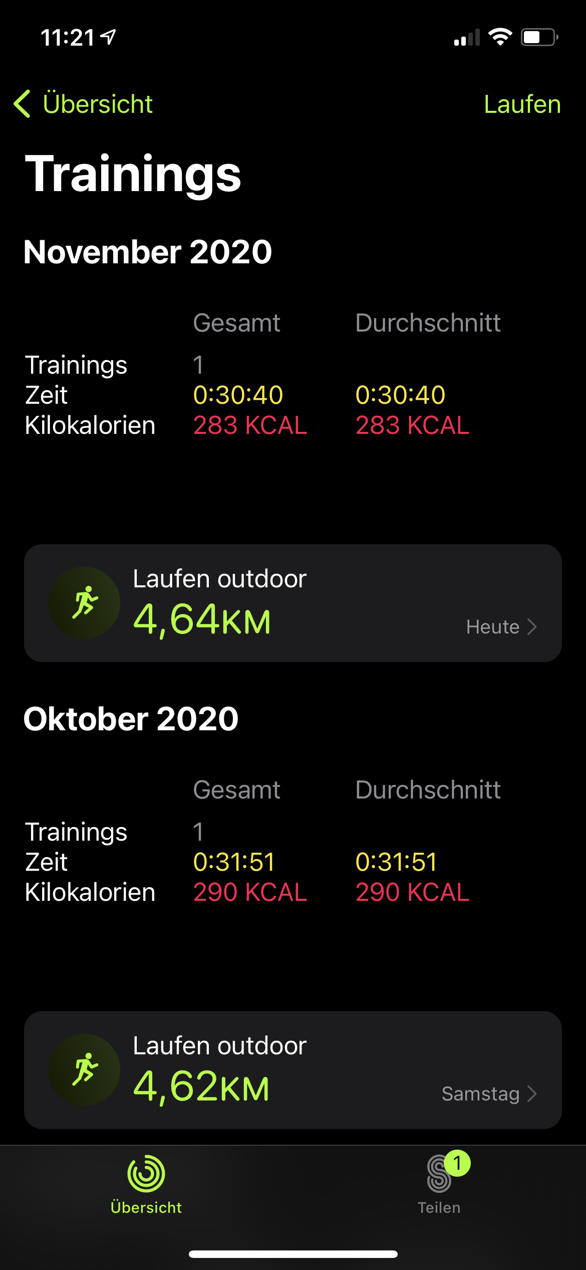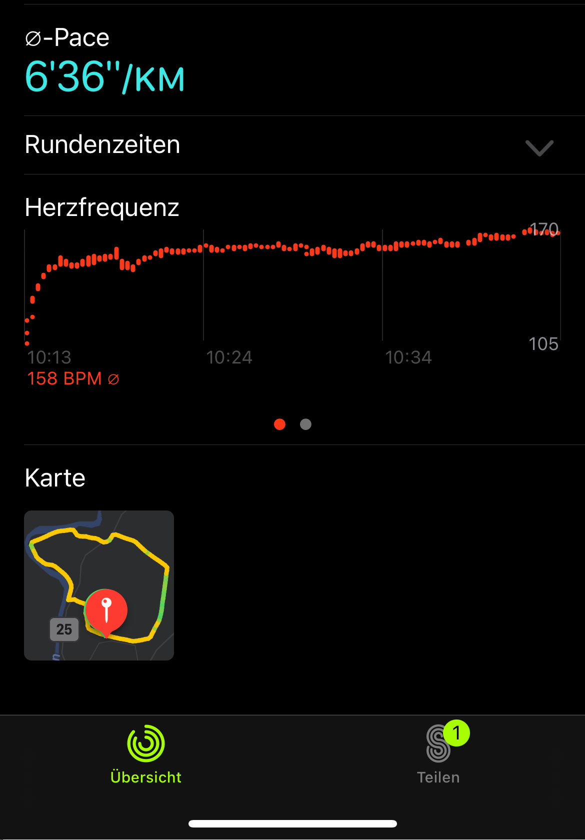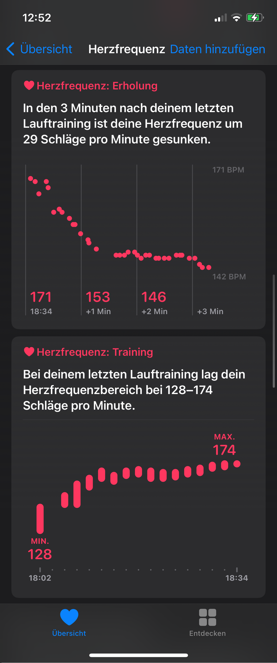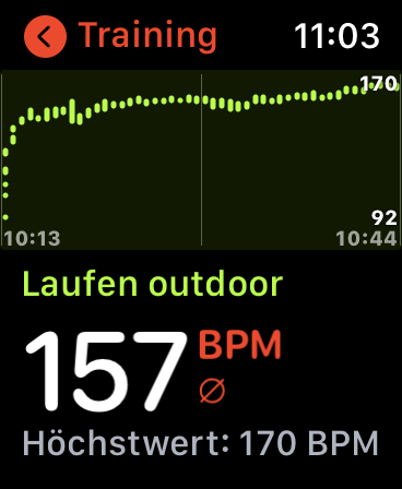 Am selben Tag findet man die Workout-Protokolle noch in der App »Aktivität« auf der Watch, danach nur noch auf dem iPhone. Dort liefert die Health-App auch Diagramme zum Verlauf der Herzfrequenz während des Workouts und der Erholung danach – das allerdings ebenfalls nur taggleich.