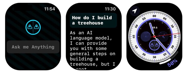 Ist die App erstmal geöffnet, können Nutzer per Sprache eine Anfrage stellen, die anschließend durch ChatGPT verarbeitet und beantwortet wird. Gerade auf der Apple Watch, auf der herkömmliche Suchmaschinen aufgrund des kleinen Displays kaum sinnvoll genutzt werden können, präsentiert sich watchGPT als attraktivere Alternative, um schnell etwas nachzuschlagen. Abgesehen von einfachen Unterhaltungen mit der künstlichen Intelligenz erlaubt es watchGPT auch, die Antworten über E-Mail, SMS oder auf sozialen Netzwerken zu teilen.