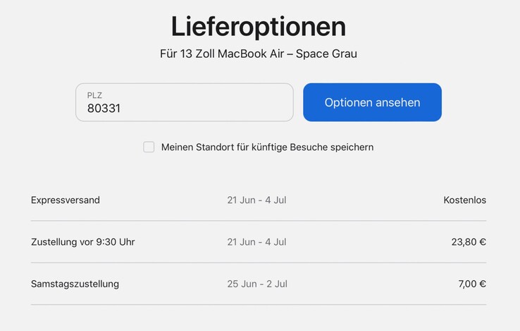 Wer heute ein 14 Zoll oder ein 16 Zoll MacBook Pro bei Apple bestellt, der bekommt das Notebook voraussichtlich zwischen dem 27. Juni un dem 13. Juli geliefert. Beim MacBook Air erfolgt die Lieferung voraussichtlich zwischen dem 25. Juni und dem 4. Juli, Kunden müssen also teilweise über zwei Monate auf die Auslieferung ihrer Bestellung warten.