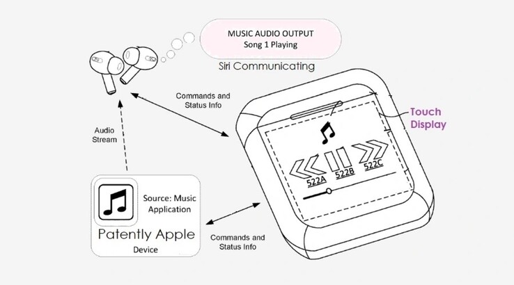 Apple hat beim United States Patent and Trademark Office (USPTO) ein Patent angemeldet, das ganz offensichtlich eine neue Version der AirPods Pro (ca. 260 Euro auf Amazon) zeigt, die mit einer Ladehülle mit integriertem Touchscreen ausgestattet sind. Das Patent wurde im September 2022 beantragt, aber erst kürzlich veröffentlicht.