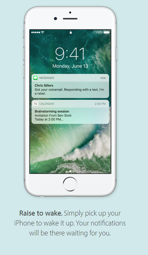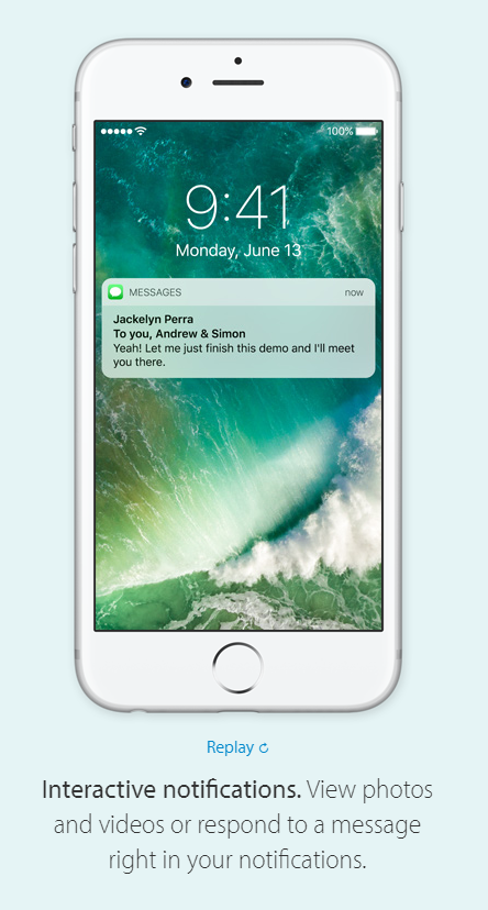 Apple verbessert in iOS 10 die Interaktion mit dem Lockscreen. "Rich Notifications" zeigen nun ganze Konversationen sowie Videos und Bilder an, 3D Touch funktioniert nun auch auf dem Lockscreen und in den redesignten Notifications. Die Control Center wurde erweitert, ein Swipe nach rechts zeigt ein umgebautes Mediaplayer Control Panel, ein Swipe nach links öffnet die Widgets. 3D Touch wird deutlich stärker im System verankert. Notifications erscheinen nun automatisch wenn man das iPhone in die Hand nimmt.