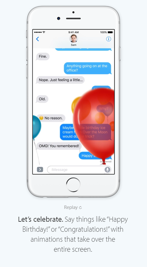 Zwar wurde iMessage (noch) nicht für Android-User geöffnet, ansonsten wird das Apple Chatprogramm aber offener und vielseitiger. Links werden zukünftig mit Vorschau angezeigt, auch Videos und Live Photos sind nun direkt in iMessage abspielbar. Auf Wunsch können Wörter durch Emojis ersetzt und größer angezeigt werden. Google Allo lässt grüßen! Überhaupt wird iMessage fast genauso verspielt wie der neue Google Messenger: Die Chat-Blasen können allerlei Effekte produzieren, handschriftliche Nachrichten, sich langsam entblößende Photos und selbst Fullscreen-Effekte wie ein Feuerwerk lassen sich nun versenden, wenn Sprache alleine nicht mehr reicht. Dabei bleibt eine Konversation in iMessage allerdings per default immer Ende-zu-Ende-verschlüsselt, wie der Software-Chef betonte.