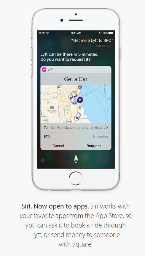 Wie erwartet, öffnet Apple Siri für Entwickler und erwartet sich damit eine verbesserte Integration in Third-Party-Apps. Während der Keynote wurde die Interaktion mit der App Wechat präsentiert, Siri war durch die Spracherkennung in der Lage zu erkennen, dass der Benutzer Wechat benutzen wollte und bot dort die gleiche Funktionalität wie beispielsweise in iMessage. Auch die Fotosuche oder die Interaktion mit Fahrtdiensten wie Uber wurden als Beispiele gezeigt, sofern die Entwickler Siri in ihre Produkte integrieren.