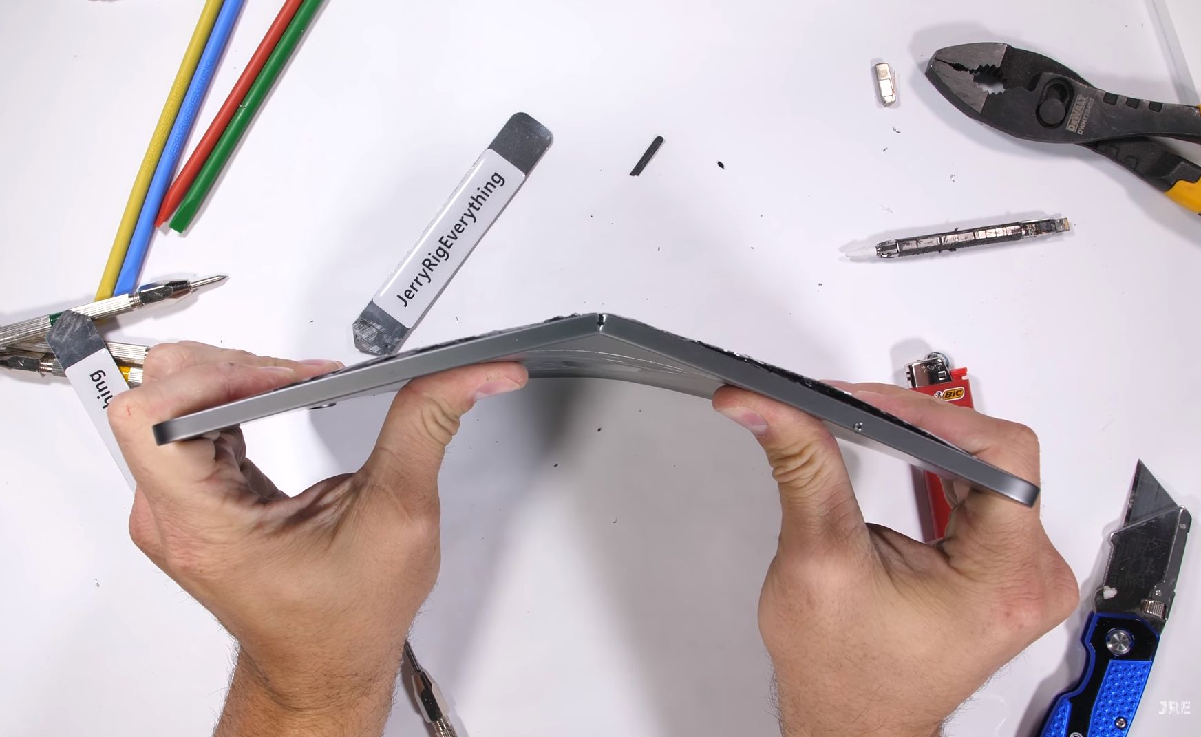 Sowohl Kratz- als auch Burntest verlaufen noch relativ erwartbar, auch die einmal mehr bei Apple-Geräten enttäuschende Saphirglas-Abdeckung der Kamera ist beim iPad Pro des Jahres 2018 wieder mit an Bord und zerkratzt wie reguläres Glas. Der Bendtest zeigt dann allerdings die Grenzen der Widerstandsfähigkeit auf, das Tablet zerbricht buchstäblich in der Mitte, und das gleich beim ersten Versuch. Das dünne und leichte Design hat also Konsequenzen - wer sein teures Apple-Tablet nicht innerhalb kurzer Zeit in wertlosen Elektroschrott verwandeln will, sollte es nicht ungeschützt im Backpack gegen Wände oder Sessel drücken oder es gar auf der Couch rumliegen lassen - Ein unabsichtliches Draufsetzen überlebt es mit Sicherheit nicht.