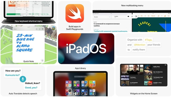 Durchaus praktisch für die tägliche Arbeit ist auch die Verfügbarkeit von Apples Übersetzungsfunktion "Translate" und "Auto-Translate" systemweit in iPadOS, wer lieber mit Keyboard-Shortcuts arbeitet, bekommt ein Keyboard-Shortcut-Menü zur Verfügung gestellt. Neben den neuen speziellen iPadOS-Funktionen bietet das neue Betriebssystem natürlich auch viele der neuen Features, die Apple heute für iOS 15 vorgestellt hat, zum ersten Programmieren mit Swift kann man nun in Swift Playgrounds direkt am iPad Programmieren lernen.