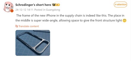 Nun sehen wir erstmals potentiell, wie das aussehen könnte, zumindest deutet ein zuerst im chinesischen Netzwerk Weibo geleaktes Bild (siehe unten) auf das potentielle Redesign des iPhone 17 beziehungsweise iPhone 17 Pro Gehäuses. Der Leaker behauptet, dass dieses Photo aus der Zulieferindustrie stammt und dass die Ultraweitwinkel-Kamera sich in der Mitte des horizontalen Kamera-Moduls befinden wird, offenbar aus Platzgründen. In den Kommentaren zu diesem Post ist auch von "Space Video" die Rede, vermutlich ist damit gemeint, dass trotz des Kamera-Redesigns mit der iPhone 17 Serie Spatial-Videos aufgenommen werden können.