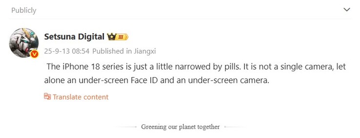In den Kommentaren erwähnte der Leaker zudem, dass das iPhone 18 Basismodell verschoben offenbar verschoben wird - das passt zu den oben angesprochenen früheren Gerüchten. Ebenfalls zu den aktuellen Leaks passt ein X-Post des DSCC-Analysten Ross Young, der 2023 erstmals die oben verlinkte Display-Roadmap bis 2027 geleakt hatte. Auch er bekräftigte Verzögerungen am ursprünglichen Plan, sowohl die Under-Display-Kamera als auch die unter dem Display versteckte Face ID Sensorik sollen also noch nicht im nächsten Jahr marktreif sein.
