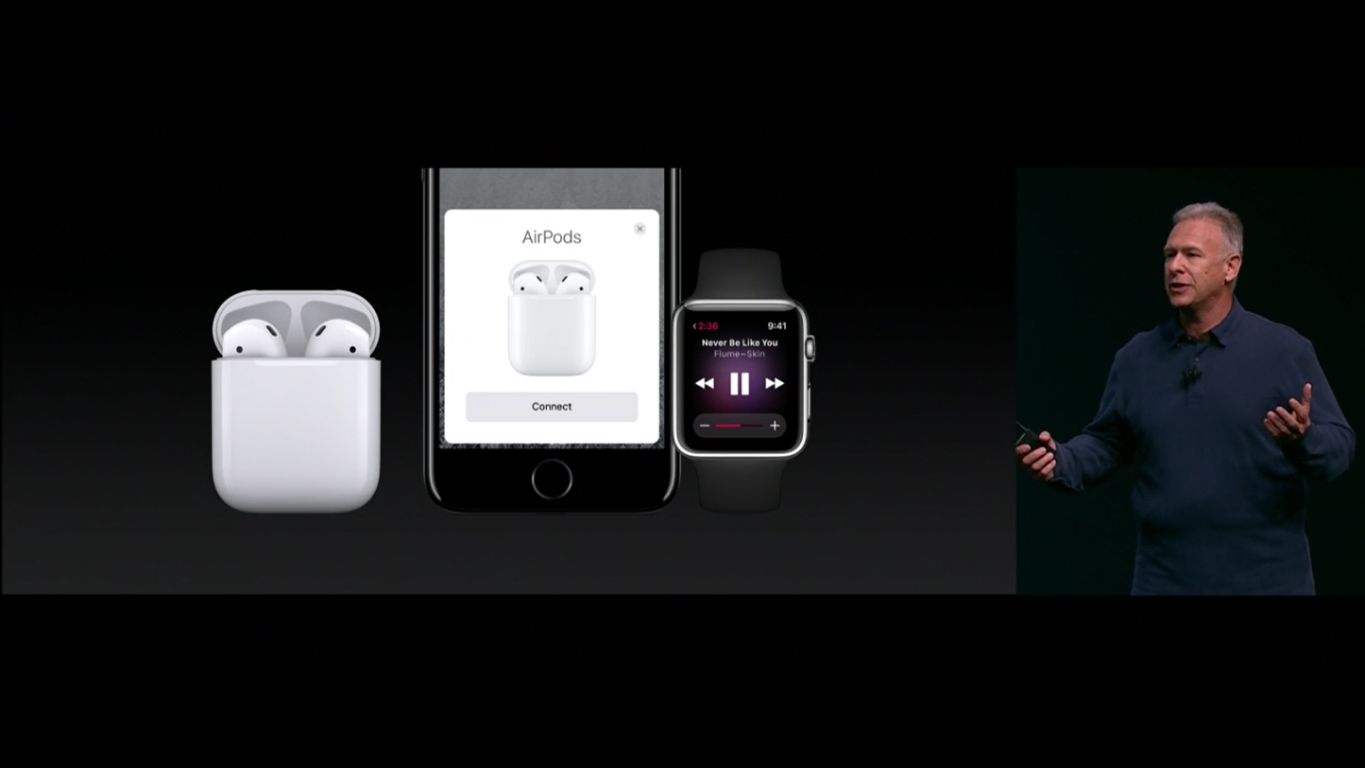 Apple hat erstmals bei einem iPhone Stereo Lautsprecher verbaut, die zudem auch mehr Dynamik haben und doppelt so laut sind wie beim Vorgänger iPhone 6s. Der interessanteste Teil der Präsentation war wohl die Frage wie Apple das Weglassen der Klinkenbuchse argumentiert. Nun, mit einem Zitat aus der Präsentation: mit Courage. Apple traut sich, einen mehr als 100 Jahre alten analogen Standard wegzulassen und zeigte dazu ein altes Telefon-Switchboard als Argument dafür, dass es Zeit wäre die analoge Welt auch bei den Kopfhörern zu verlassen. Stattdessen verwies Apple auf die vielen Alternativen, beispielsweise den beigelegten Lightning-auf-Klinke-Adapter, die beigelegten Lightning Earpods, das mehr als 900 Millionen fassende Zubehörprogramm mit Lightning-Connector (wobei wohl nicht alle Audiogeräte sind) und last but not least auf Wireless Audio.