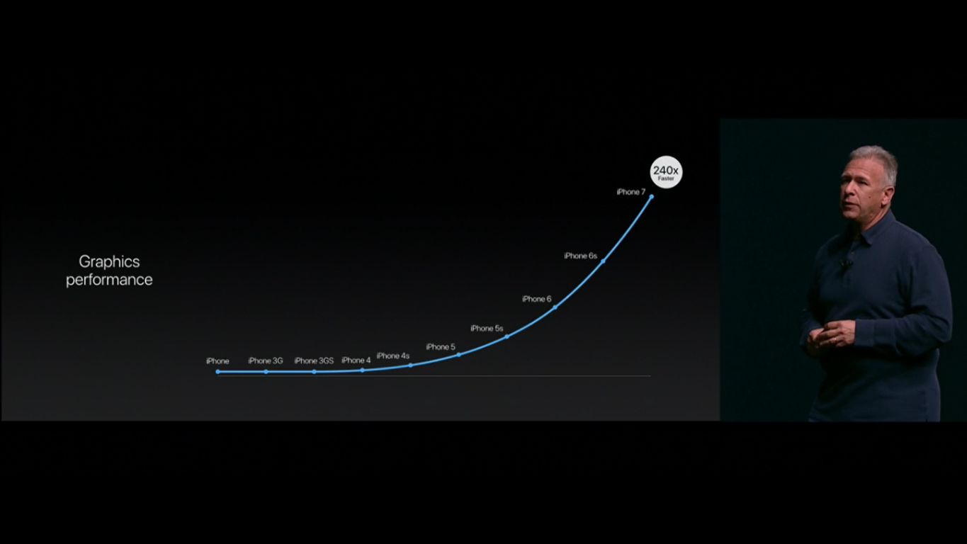 Bereits im Vorfeld wurde bekannt, dass Apple beim iPhone 7 stark an der Performanceschraube gedreht haben dürfte. Bis zu 2,45 Ghz schnell soll der neue Chip gerüchteweise sein. Offiziell ist bislang nur bekannt, dass der A10 Fusion, wie Apple den neuen Chip nennt, aus vier Kernen besteht, zwei High-Performance-Cores und zwei High-Efficiency-Cores. Erstere sind 40 Prozent schneller als der A9 und doppelt so schnell wie der A8, letztere sollen nur ein Fünftel der Energie verbrauchen, beispielsweise beim Abrufen von emails. Auch die GPU-Performance konnte stark zulegen, um 50 Prozent im Vergleich zum A9 und sogar drei mal mehr als beim A8-Chip im iPhone 6. Apple nennt den A10 Fusion den schnellsten Prozessor, der je in einem Smartphone verbaut wurde.