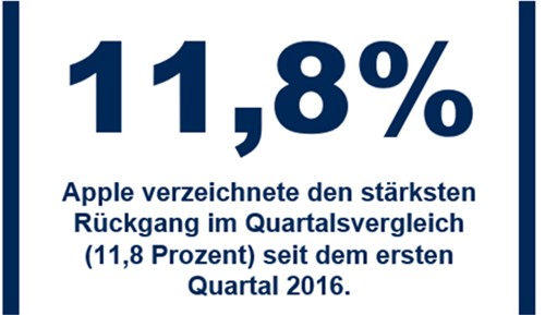Laut den Ergbnissen von Anshul Gupta, Senior Research Director bei Gartner, hatte Apple im 4. Quartal 2018 mit 11,8 Prozent den stärksten Rückgang im Quartalsvergleich seit dem ersten Quartal 2016 zu verzeichnen. Der weltweite Verkauf von Smartphones an Endverbraucher stagnierte im vierten Quartal 2018 mit 408,4 Millionen Einheiten. Laut dem Research- und Beratungsunternehmen Gartner entspricht das einem Wachstum von nur 0,1 Prozent gegenüber dem vierten Quartal 2017.