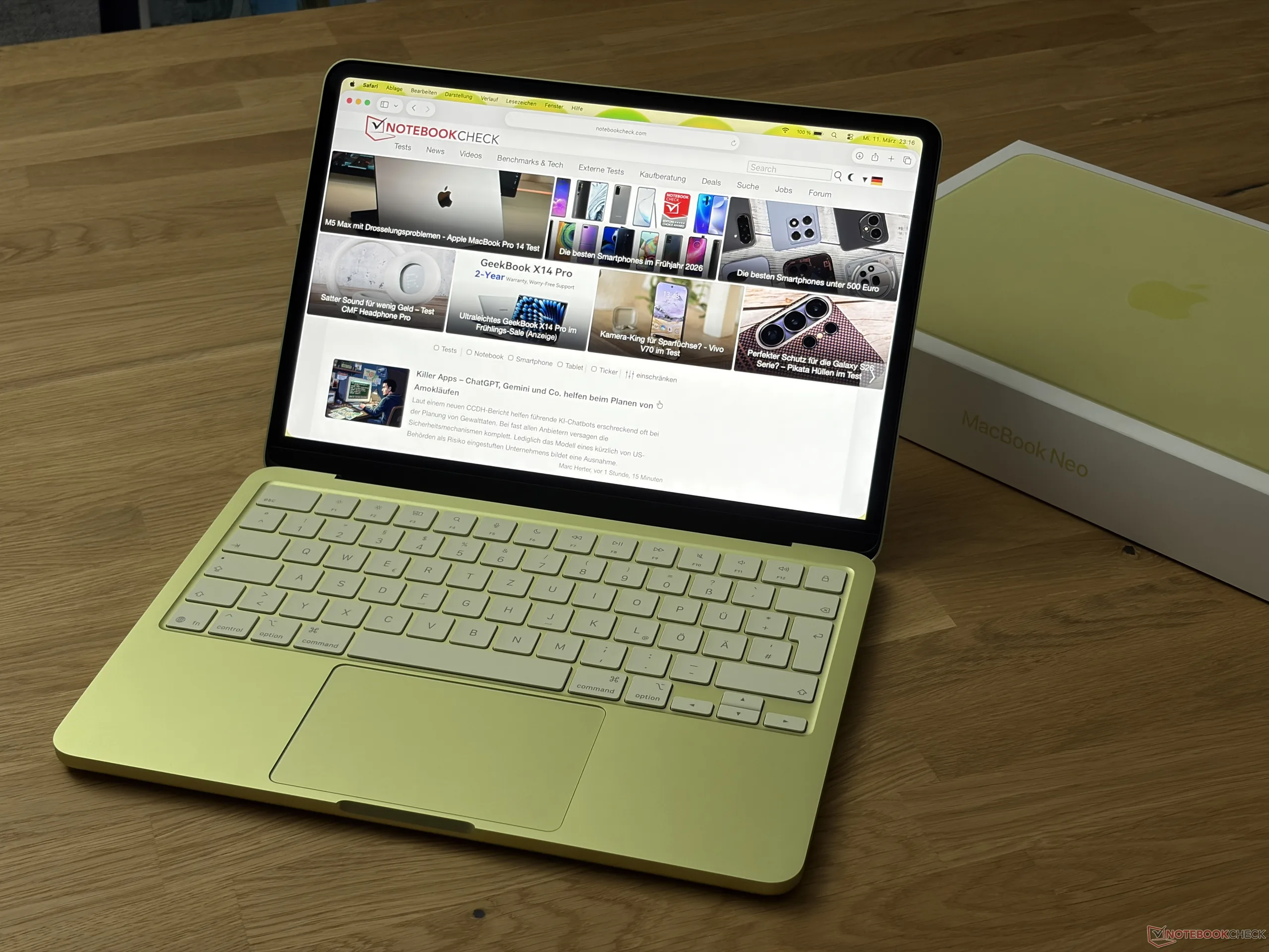 Damit ist die Frage nach der Leistung in alltäglichen Situation schon einmal geklärt und zeigt auch, warum Apple noch nicht einmal den neueren A19 Pro aus dem aktuellen iPhone 17 Pro nehmen musste. Das bedeutet aber gleichzeitig auch, dass vor allem günstige Windows-Laptops (bei denen ja noch deutlich schwächere Prozessoren zum Einsatz kommen) leistungsmäßig deutlich abfallen. Zusammen mit den anderen positiven Qualitäten (Aluminiumgehäuse, gutes IPS-Panel mit 500 Nits Helligkeit und voller sRGB-Abdeckung, lautlos) und dem geringen Preis (bei den man auch die standardmäßig die inkludierte Software von macOS nicht vergessen darf), könnte das MacBook Neo das Segment der Budget-Laptops ziemlich durcheinanderwirbeln.