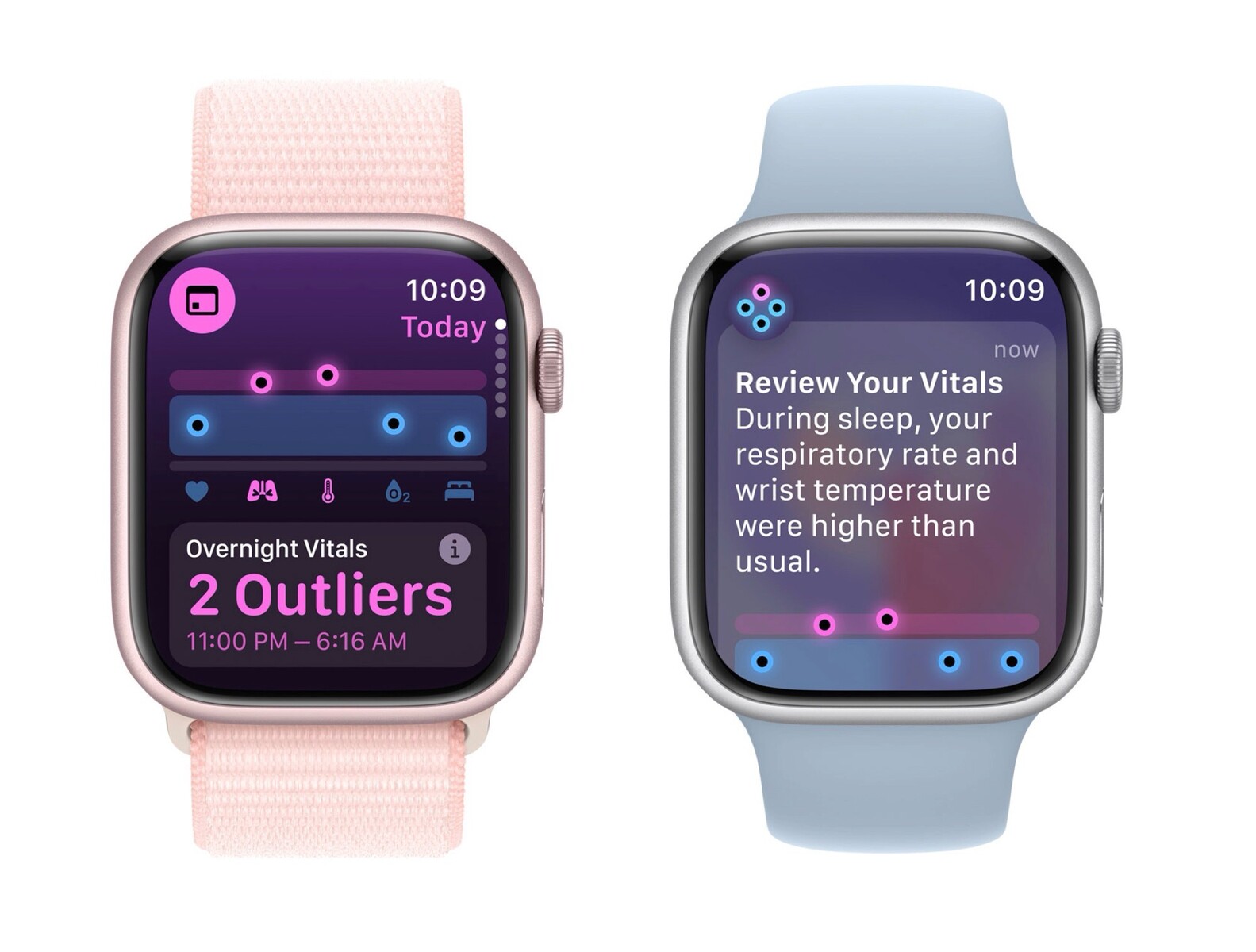 Der Fokus von watchOS 11 liegt klar auf Fitness und Gesundheit. Denn das Update erlaubt es, die Aktivitätsringe für einen Tag zu pausieren, ohne Rekorde wie die "längste Bewegungsserie" zu unterbrechen. Die Vitalzeichen-App zeigt übersichtlich an, wenn Ausreißer in den Gesundheits-Daten festgestellt werden, wie zu hoher Puls, eine ungewöhnliche Atemfrequenz oder eine niedrige Hauttemperatur während des Schlafs.
