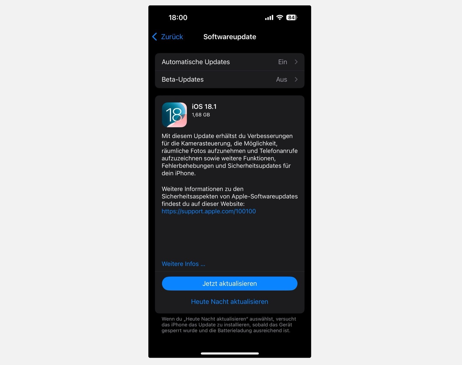 Das Update bringt darüber hinaus zahlreiche kleinere Verbesserungen und Fehlerbehebungen mit. iOS 18.1 bringt Unterstützung für RCS Business Messaging mit, behebt einen Bug, durch den Podcast-Episoden fälschlicherweise als bereits gehört markiert wurden, und verhindert, dass 4K-Videos ruckelig wiedergegeben werden, wenn das iPhone zu heiß läuft. Auch die Abstürze des iPhone 16 und iPhone 16 Pro sollen behoben werden.