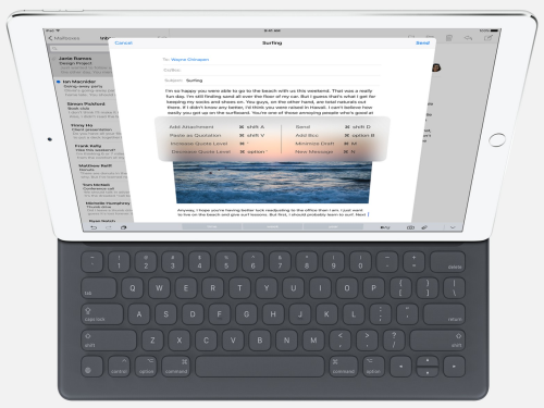 Mit dem iPad Pro möchte Apple offenbar Microsofts Surface Pro 3 Konkurrenz machen. Wie dieses ist das Apple Pro auf Produktivität ausgelegt. Allerdings gibt es kein vollwertiges Mac OS, während Microsoft dem Surface Pro 3 ein vollwertiges Windows spendiert. Vielmehr verlässt sich das 12,9 Zoll große Tablet auf das mobile Betriebssystem iOS 9, das um einige Features ergänzt wurde. Das Tablet erlaubt Multi-Tasking mit zwei Fenstern nebeneinander. Außerdem ermöglicht das iPad Pro das Zeichnen und Notizen machen mit dem aktiven Eingabestift Apple Pencil.