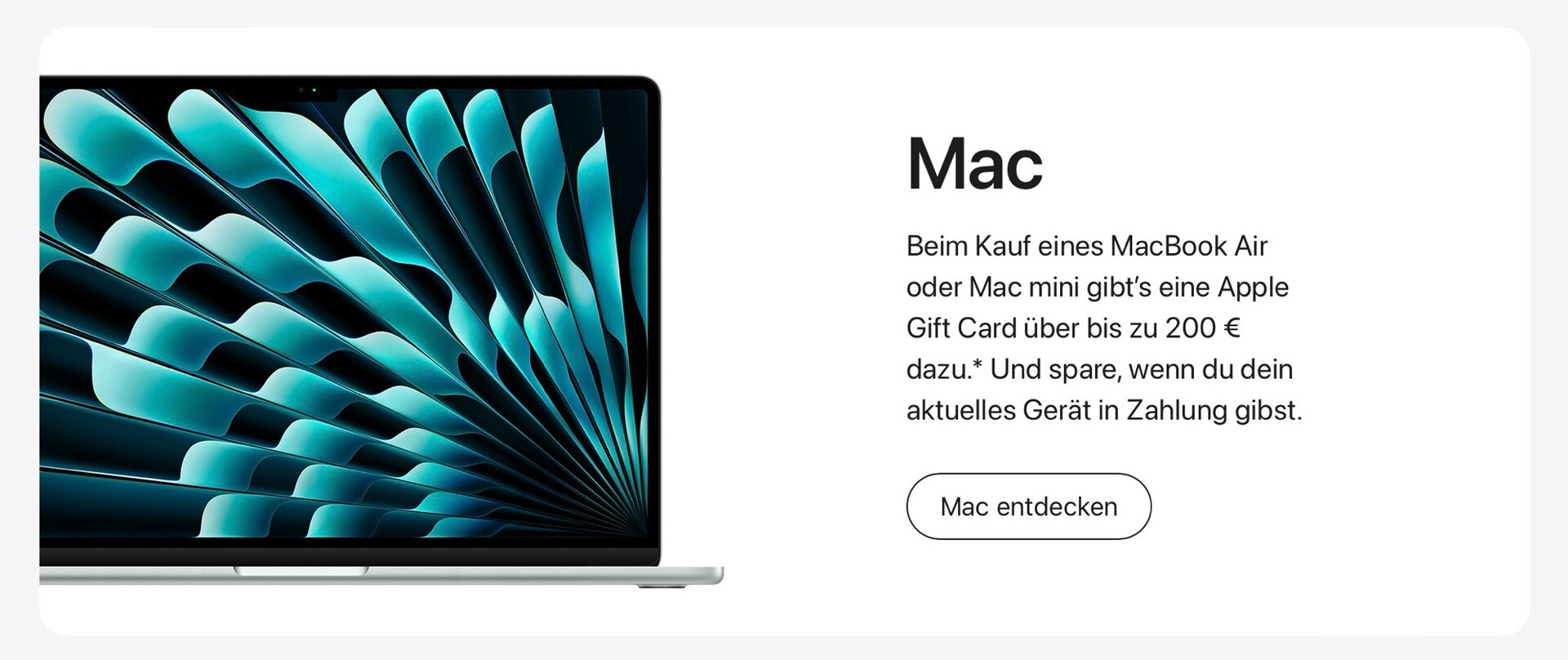 - 15 Zoll MacBook Air: 200 Euro Gutschein