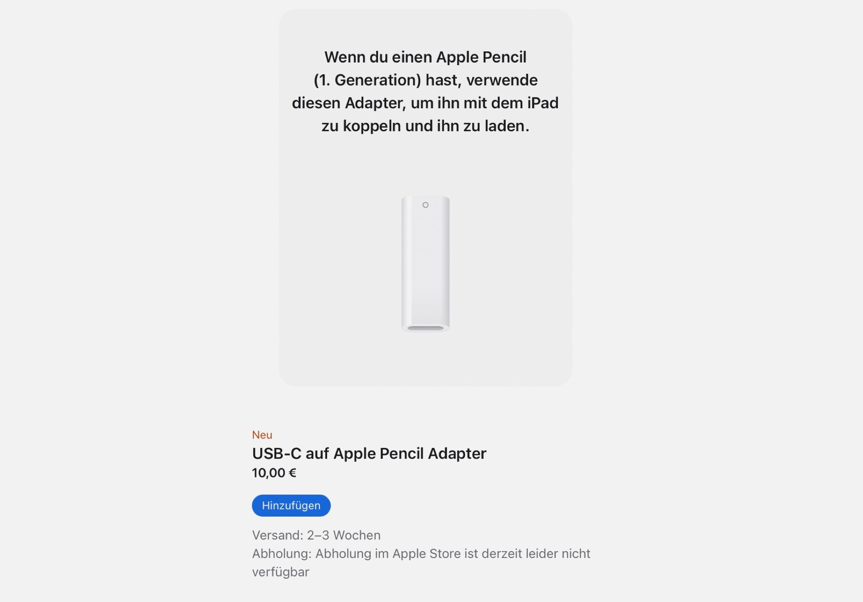 Das Apple iPad der zehnten Generation kann ab sofort über die Webseite von Apple vorbestellt werden, die Auslieferung startet am 26. Oktober. Das Basismodell mit 64 GB Speicher kostet 579 Euro, für 256 GB Speicher wird ein Aufpreis von 200 Euro veranschlagt, ein 5G-Modem kostet weitere 200 Euro. Die passende Tastaturhülle bietet Apple für 299 Euro an, den Apple Pencil für 115 Euro, den Adapter zum Aufladen des Apple Pencil für 10 Euro.