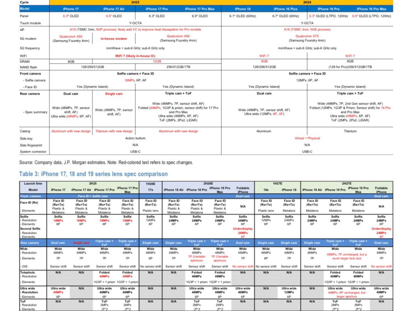 Der Analyst Max Weinbach hat kürzlich eine Tabelle von JP Morgan veröffentlicht, in der kommende Apple-Smartphones inklusive dem besagten iPhone Air 2 und iPhone Air 3 aufgeführt werden. Weinbach betont, dass JP Morgan und andere Großbanken gute Kontakte zur Lieferkette von Apple haben. Dies deutet also darauf hin, dass sich die Zulieferer trotz schwacher Verkaufszahlen des iPhone Air bereits auf ein iPhone Air 2 und 3 vorbereiten.