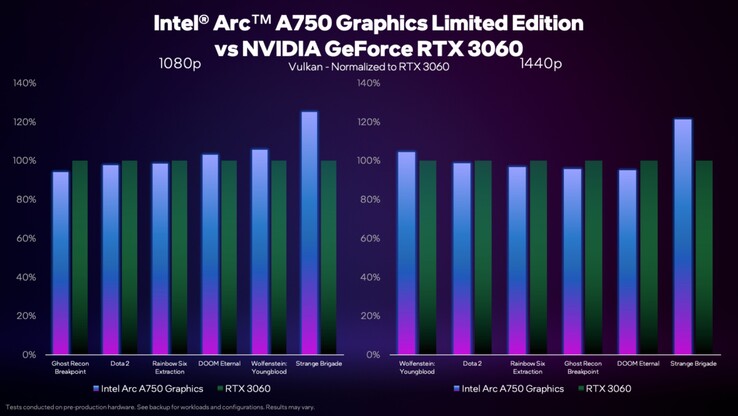 Intels Tom Petersen hat in Interviews mit PC Games Hardware und Digital Foundry einige interessante Angaben zu den beiden schnellsten Arc-Grafikkarten gemacht, der Arc A770 und der Arc A750. Demnach wird die Arc A770 wahlweise mit 8 GB oder mit 16 GB GDDR6-Grafikspeicher angeboten, in der Praxis soll die Grafikkarte eine Performance erzielen, die zwischen der Leistung der Nvidia GeForce RTX 3060 und der GeForce RTX 3060 Ti liegt.