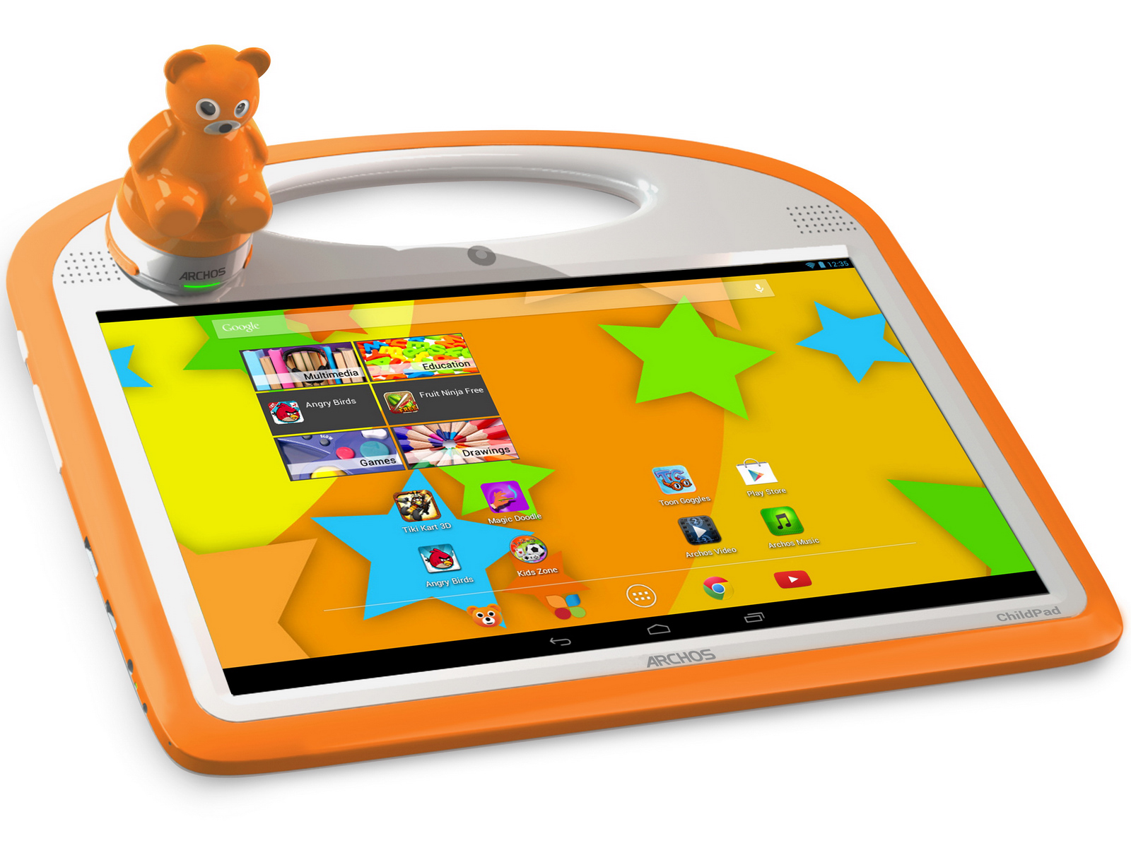 Unterwegs im Internet steht den Eltern der Schutz des Mobile Parental Filter zur Seite, der das Surfverhalten der Kinder kontrolliert und einschränkt. Die große Version hat als Archos 101 ChildPad neben einem praktischen integrierten Tragegriff, noch einen besonderen Begleiter dabei: Am 10,1 Zoll großen Display ist eine abnehmbare, magnetische Bärchen-Figur angebracht. Diese verfügt über einen eingebauten Lautsprecher, zwei LEDs und ein Mikrofon.