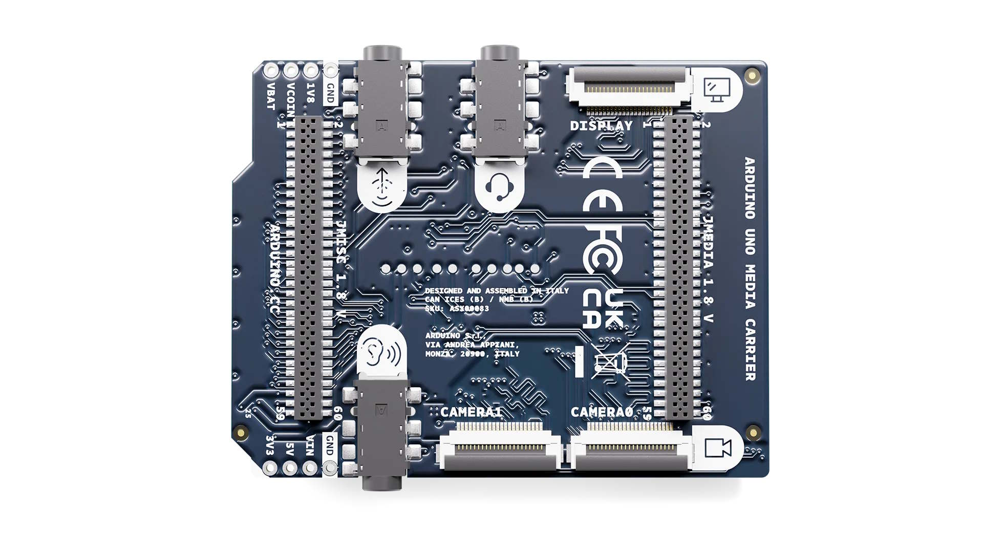 Arduino hat eine neue Platine vorgestellt, die explizit als Erweiterungsplatine dient und für sich genommen nicht nutzbar ist. Kompatibel ist das System zum von uns bereits getesteten Arduino UNO Q (im Preisvergleich) und auch zum kommenden Ventuno Q. Der UNO Media Carrier bringt dabei zusätzliche Anschlüsse mit, womit sich die beiden Platinen auch für zusätzliche Einsatzzwecke eignen dürften. Sozusagen das Herzstück stellen die zusätzlichen MIPI-CSI- und MIPI-CSI-Anschlüsse dar. So gibt es zwei MIPI-CSI-Anschlüsse mit 22 Pins und vier Lanes. Über MIPI-CSI lassen sich Kameras anschließen. Da der Arduino UNO Q auch die Bilderkennung unterstützt, könnte dies einen signifikanten Mehrwert darstellen. Die Kompatibilität zur beziehungweise zu den Raspberry Pi Camera(s) wird explizit hervorgehoben. Die Raspberry Pi-Kompatibilität ist auch für das vorhandene MIPI-DSI-Interface gegeben, dementsprechend ist der Anschluss eines Displays möglich. Initial sollen Herstellerangaben zufolge Kameras mit dem IMX219-Sensor und das Waveshare 8-DSI-TOUCH-A-Display unterstützt werden.