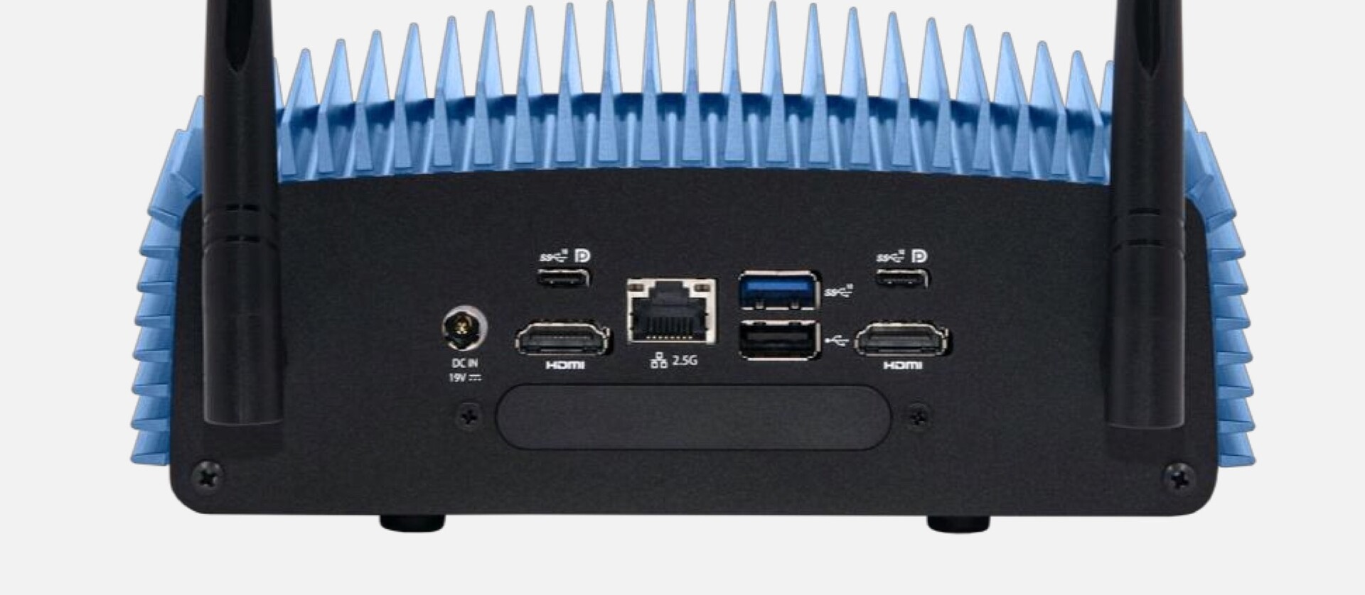 Das gesamte Gehäuse fungiert als passiver Kühlkörper, wodurch der Mini-PC komplett ohne Lüfter, und damit ohne bewegliche Komponenten auskommt, wodurch das Gerät weniger anfällig für Stöße sein soll. Der Prozessor kann seine maximale Performance ohne Lüfter aber nicht ganz erreichen, denn die maximalen Boost-Taktfrequenzen werden von 5,0 GHz auf 4,4 GHz reduziert.