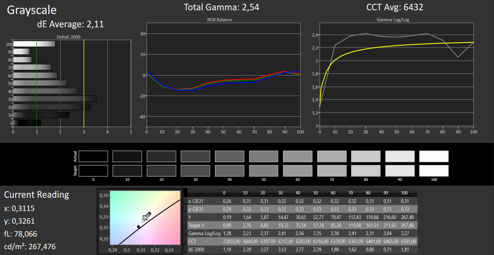ΔE Greyscale Calman: 2.21 | ∀{0.09-98 Ø5}