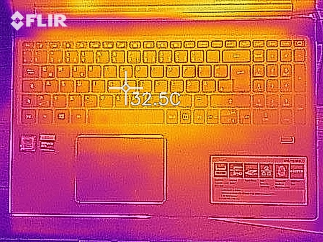(+) Die Handballen und der Touchpad-Bereich erreichen maximal 32.3 °C und damit die typische Hauttemperatur und fühlen sich daher nicht heiß an.
