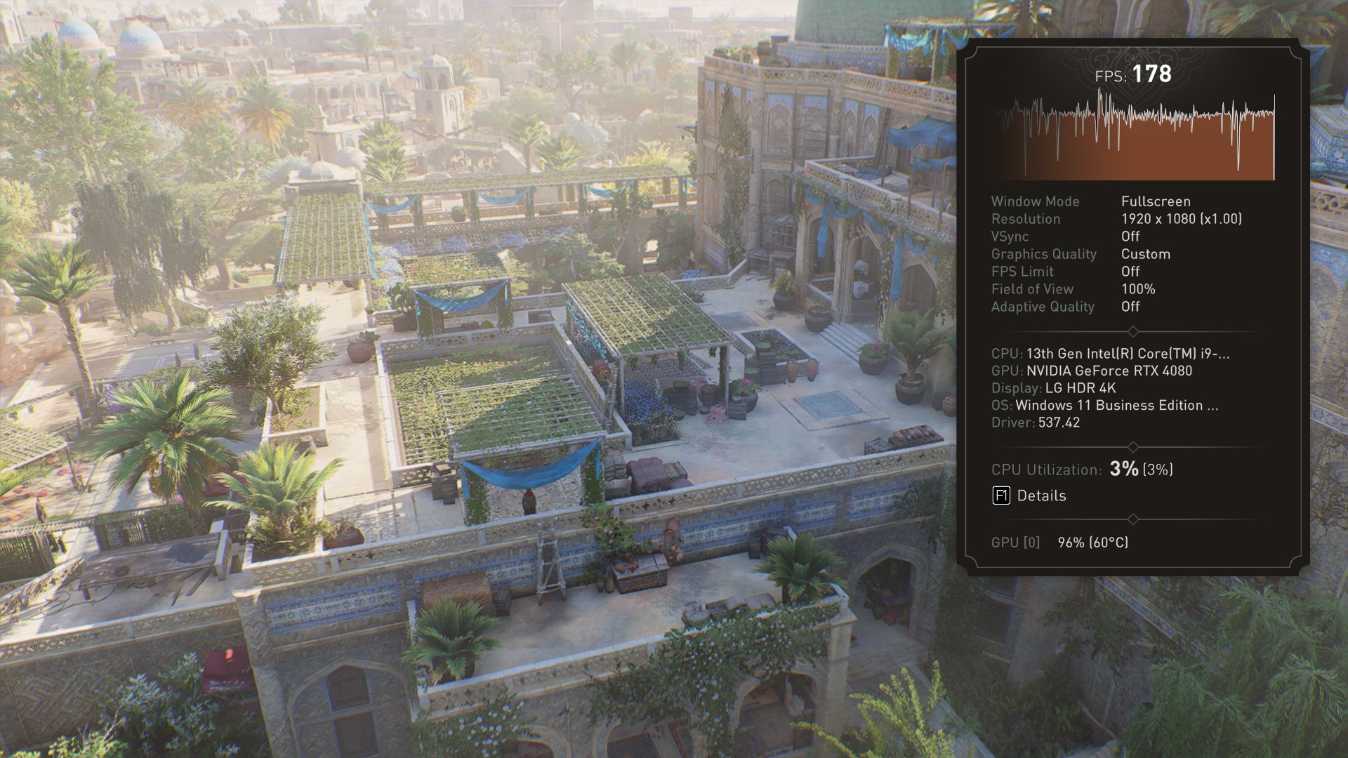 Ab 40 FPS würden wir Assassin's Creed Mirage als ordentlich spielbar bezeichnen. Für ein flüssigeres Spielerlebnis empfehlen sich wie üblich 60 FPS+. Insgesamt erweisen sich die Systemanforderungen als moderat.