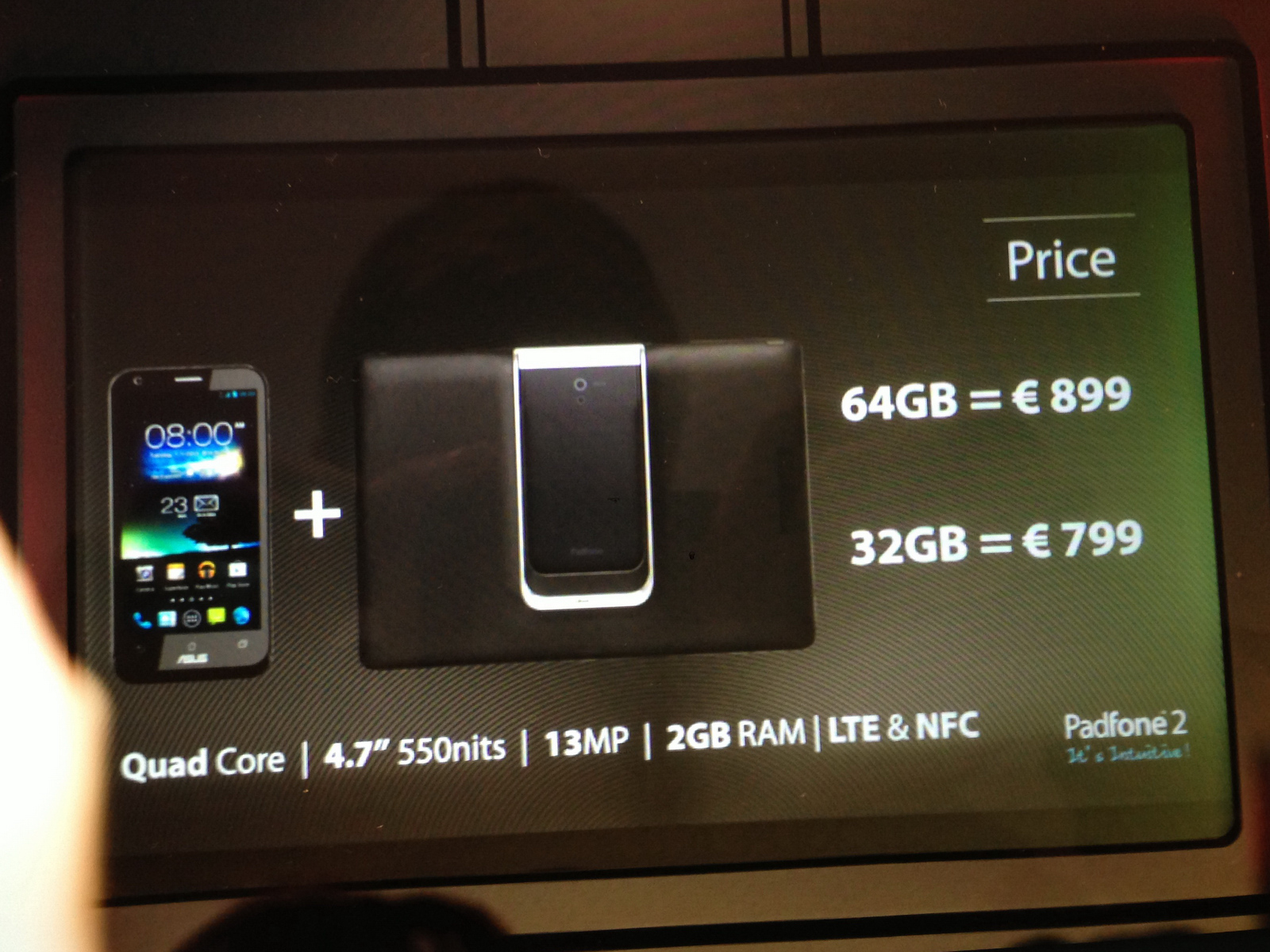 Asus hat heute den Nachfolger seines ersten Smartphone-Tablet-Hybriden Padfone vorgestellt: Padfone 2. Das neue Padfone 2 behält die Idee des Tablet-Docks mit der Asus Padfone Station bei, spendierte dem neuen Smartphone aber eine Reihe von Verbesserungen. Der Multitouch-Screen des Padfone 2 misst nun 4,7 Zoll, stammt von Sharp (IGZO) und löst mit 1.280 x 720 Pixeln auf. Wie Asus betont, ermöglicht das Padfone-2-Display Blickwinkel von 178 Grad.