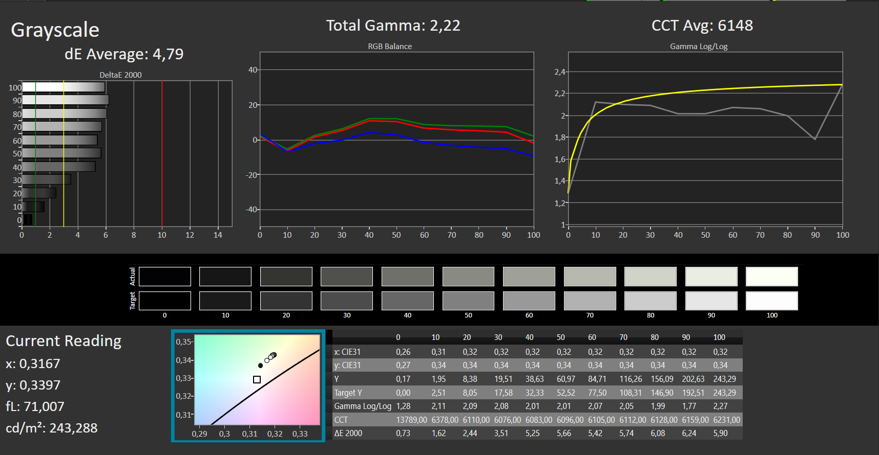 ΔE Greyscale Calman: 4.79 | ∀{0.09-98 Ø5}