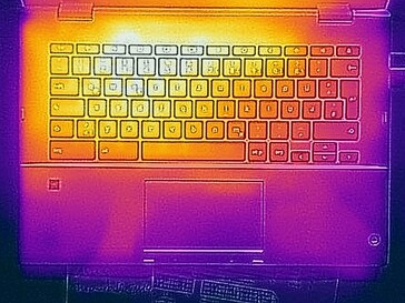 Im Alltagsbetrieb (Office, Internet) verbleiben die Gehäuse-Temperaturen des Asus Flip im grünen Bereich. Unter Last (Octane-V2- und Jetstream-Benchmark laufen in einer Schleife) fällt die Erwärmung punktuell stärker aus, im Durchschnitt aber nur moderat.
