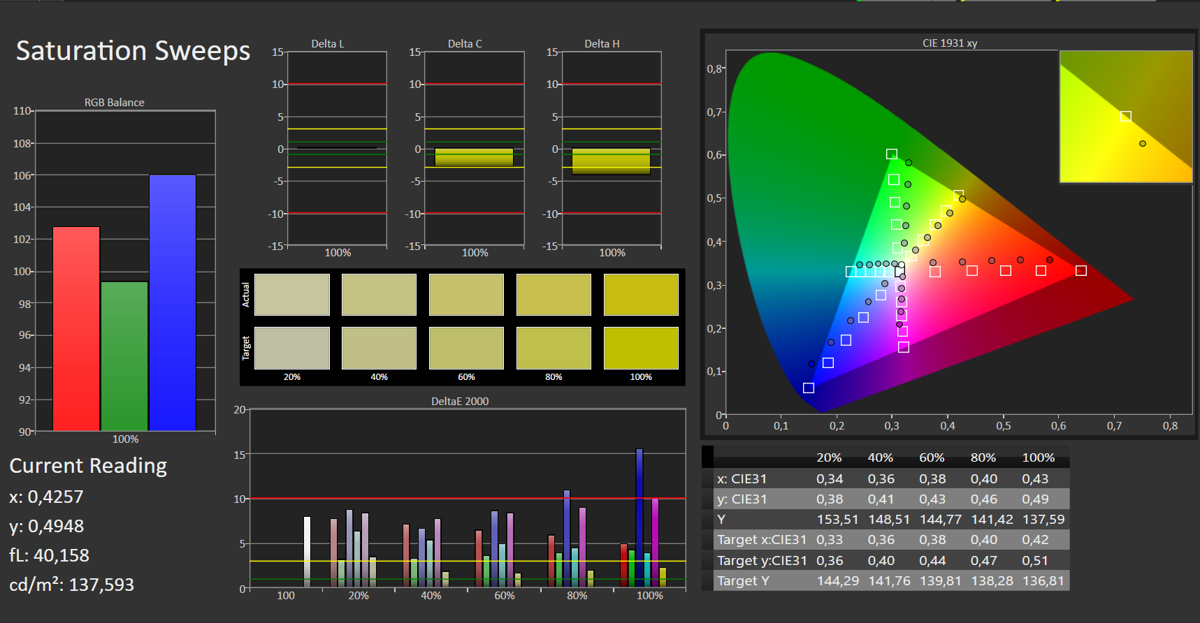 | Delta E Graustufen * | 6.2 | 2.4 61% | 6.21 -0% | 1.64 74% | 1.6 74% | 1.9 69% | 4.97 20% |