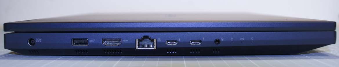 Die Anschlussauswahl am Asus Expertbook B6 Flip ist relativ standardmäßig für eine aktuelle Workstation. Allenfalls vermissen wir hier einen SD-Kartenleser. Die USB-Typ-C-Anschlüsse sind mit Thunderbolt, DisplayPort und PowerDelivery vollwertig ausgestattet. Etwas ungeschickt sind hier die großen Lüftungsöffnungen direkt neben dem USB-A-Anschluss auf der rechten Seite. Wenn man nicht aufpasst, kann man mit einem USB-Stecker unbedachter Weise die Kühlrippen beschädigen.