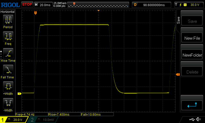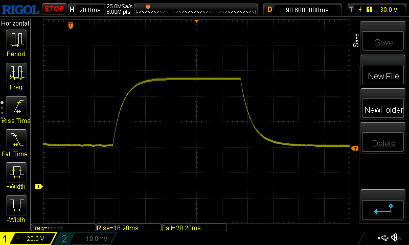 | 36 ms ... steigend ↗ und fallend ↘ kombiniert | ↗ 16 ms steigend | |
