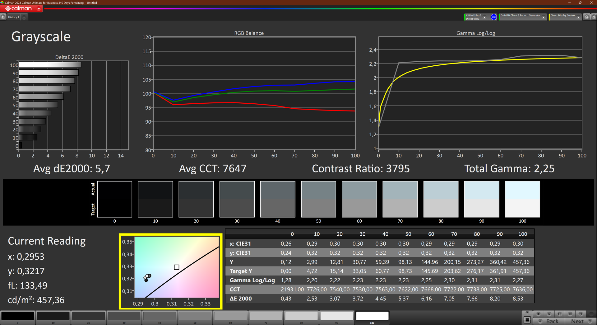 ΔE Greyscale Calman: 5.7 | ∀{0.09-98 Ø5}