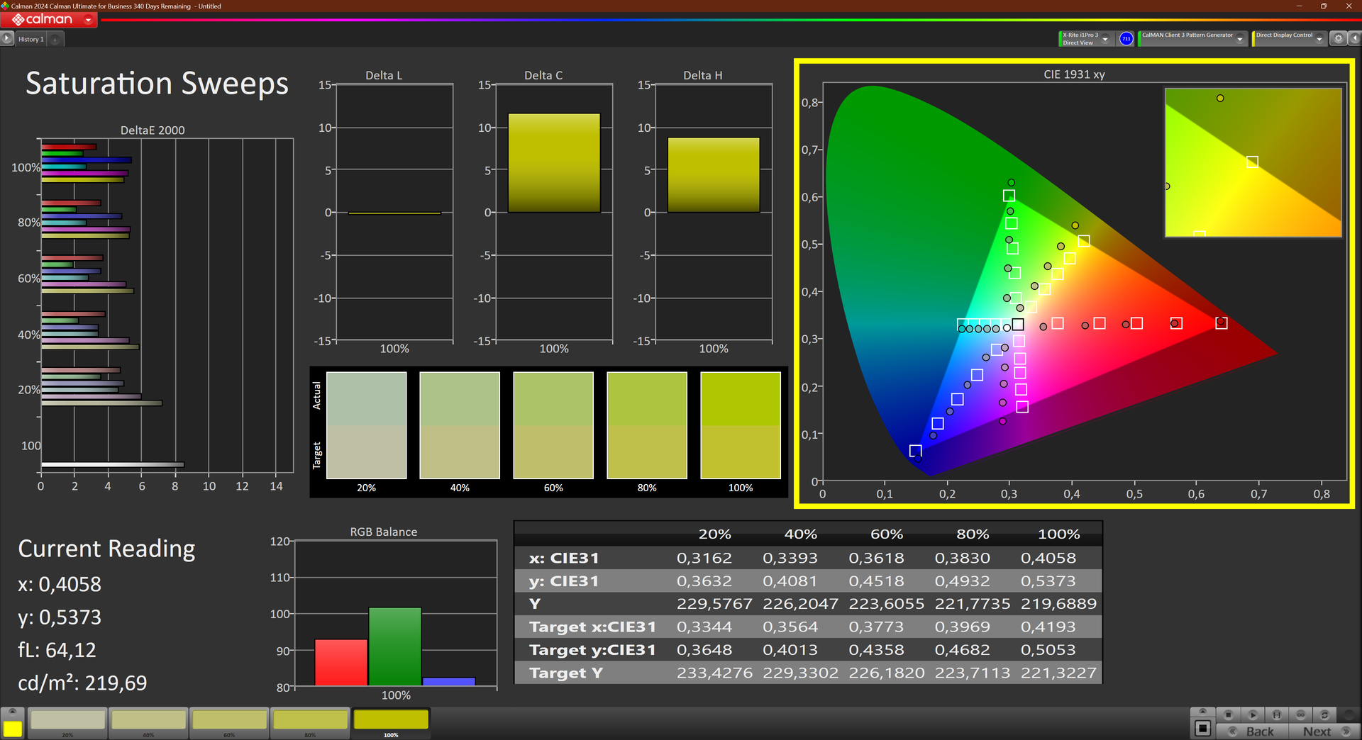 | Delta E Graustufen * | 5.7 | 8.8 -54% | 4.4 23% | 2.4 58% | 2.4 58% |