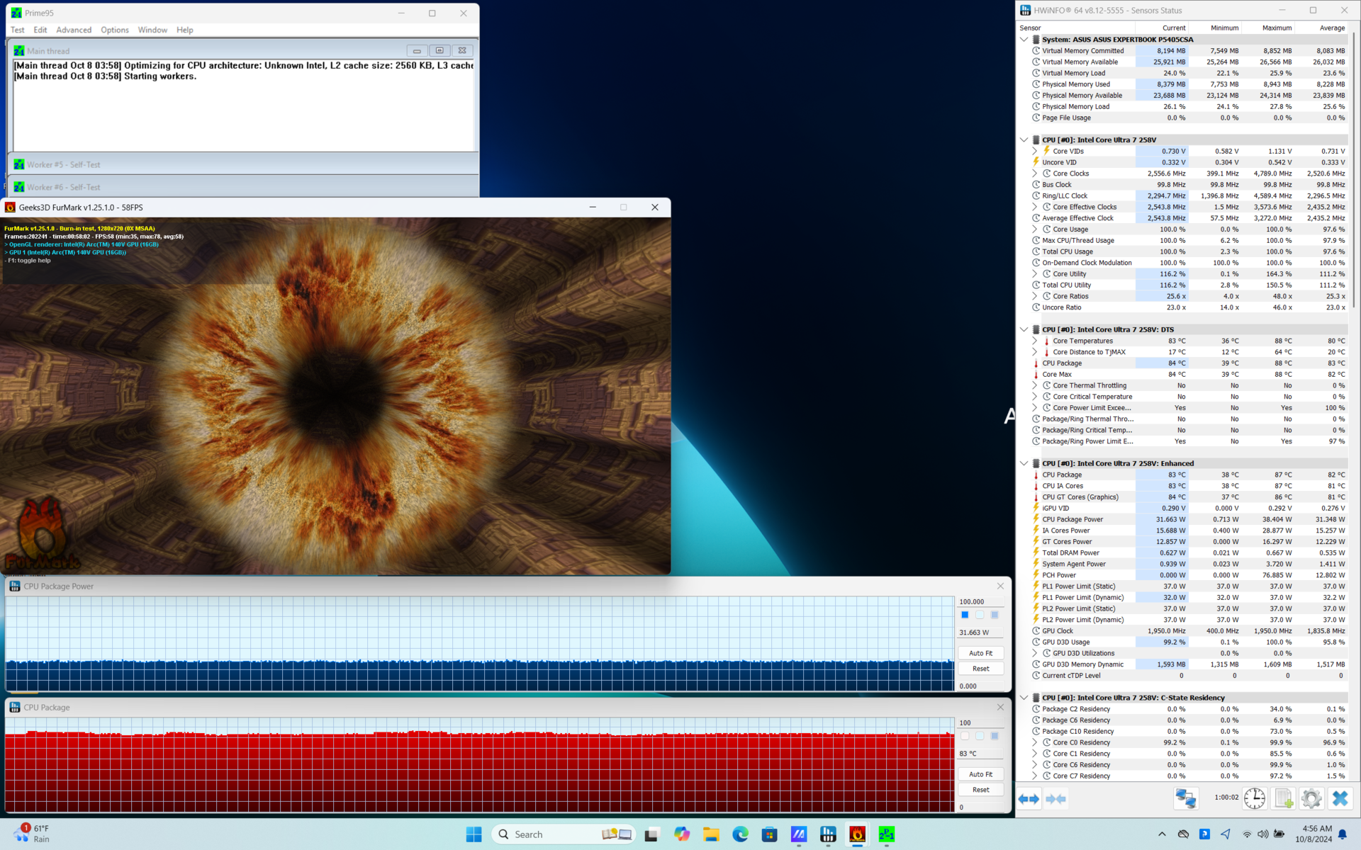 Im Stresstest kann das Asus ExpertBook auch nach rund einer Stunde noch 32 Watt verbrauchen. Throttling ist hier kein Problem.