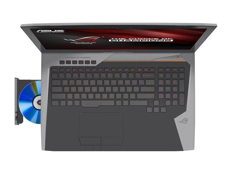EN→DE Archive.org versionThe Asus RoG G752VT is two steps forward, but a half-step back, relative to the outgoing model. The updated design is one of the most intricate we’ve seen. Its finned back edge looks like a classified weapon, especially with the LED strip inside. It would fit right into a futuristic sci-fi flick or an Area-51 expose.