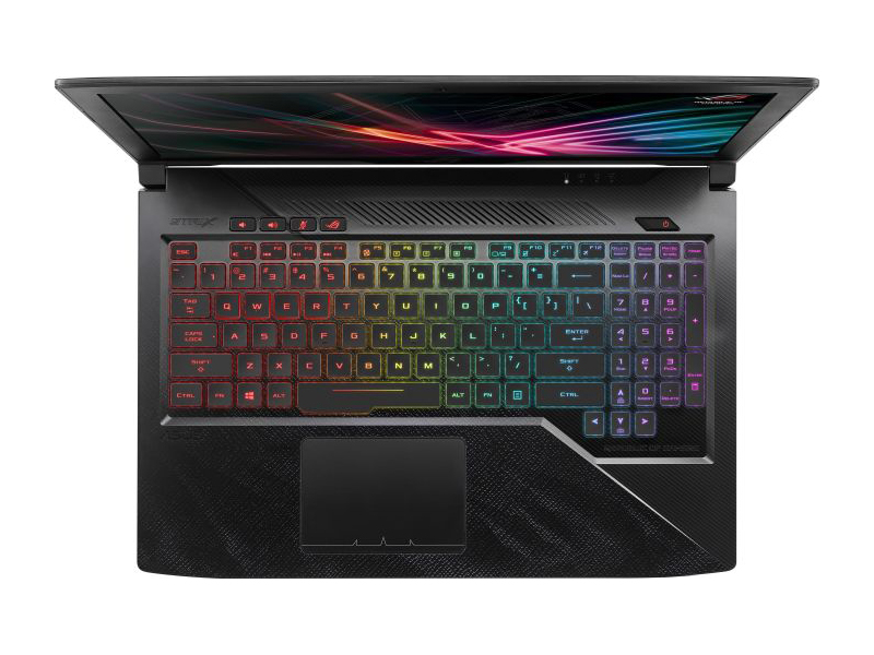 Die Asus-Aura-RGB-Gaming-Tastatur hat einen Hubweg von 1,8 mm. N-key-Rollover sorgt für schnelle, genaue Reaktion. Asus spezifiziert, dass die Tastenköpfe 0,25 mm tief konkav sind. Laut uk.pcmag.com ist das Tippgefühl angenehm und zufriedenstellend und die Tastatur fühlt sich beim Gaming gut an. Lori Grunin von www.cnet.com mag die Tastatur sehr – sowohl fürs Gaming als auch fürs Tippen. Sie findet sie sehr angenehm, die Reaktion gut und konnte keine Rollover-Probleme beobachten, doch klagt über das Fehlen einer NumLock-Statusanzeige. www.firstpost.com fasst zusammen: “The keys have good travel, respond uniformly and accurately to taps and there was no wobble to the keys.” www.hardwarezone.com.sg bewertet die Tastatur als sehr gut mit spürbarem taktilen Feedback und Hubweg. www.gadgetsnow.com findet, dass die RGB-Tastatur eine gutes Layout und eine großartige Haptik aufweist. Das Hintergrundlicht der Tastatur kann in vier Bereichen konfiguriert werden. Die Hero Edition nutzt ein Clickpad mit integrierten Tasten. www.firstpost.com findet, dass das Trackpad gut ist und genau arbeitet. www.gadgetsnow.com meint, es wäre einfach zu nutzen und würde ziemlich dem Standard entsprechen, den man in den meisten Gaming-Notebooks dieser Preisklasse antrifft.Display