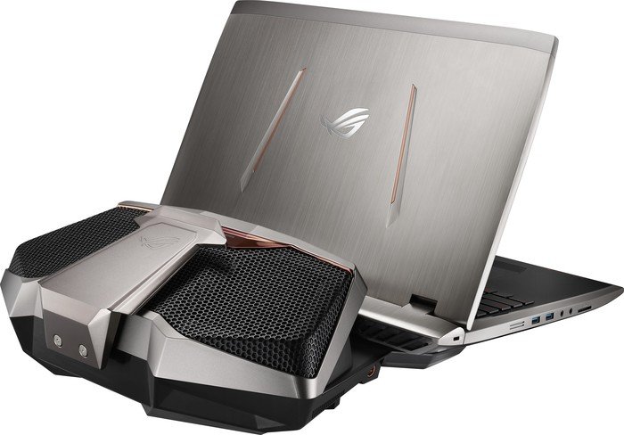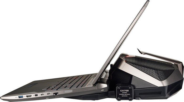 das Nonplusultra in puncto mobiles Gaming ... Das hat es vor allem zwei Dingen zu verdanken: dem verbauten Desktop-Grafikchip GeForce GTX 980 samt 8 GB Grafikspeicher und der abnehmbaren Dockingstation mit Wasserkühlung, die enorme Übertaktungsmöglichkeiten bietet. ... Das GX700 ist zwar alles andere als günstig, aber dafür liefert Asus auch nur Komponenten vom Feinsten. Der GTX-980-Chip im Asus ROG GX700 (ca. 4.500 Euro) ist so stark, dass das Notebook die Bestenliste auch ohne Wasserkühlung und Overclocking anführt. ... Das Notebook ist so stark, dass es praktisch jedes aktuelle Game ruckelfrei ausgeben kann. Mit 3,9 kg und einer Akkulaufzeit von 51 Minuten unter Volllast ist das Notebook auch ohne Wasserkühlung nicht wirklich mobil, allerdings auch nicht schlechter als die Konkurrenten.