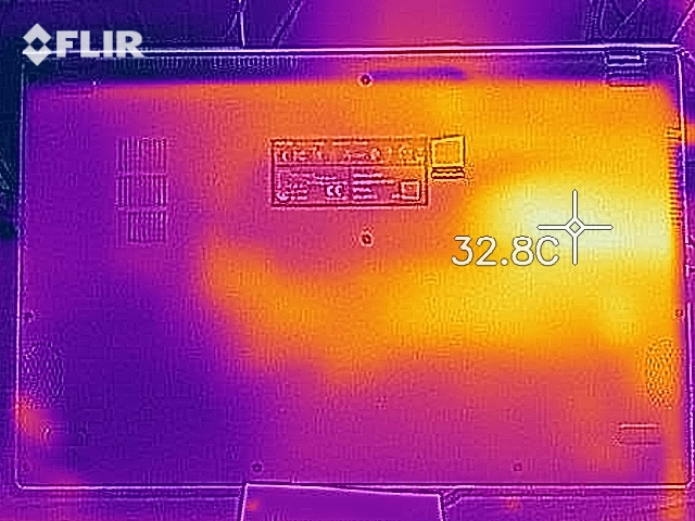 (+) Die Handballen und der Touchpad-Bereich sind mit gemessenen 27.3 °C kühler als die typische Hauttemperatur und fühlen sich dadurch kühl an.
