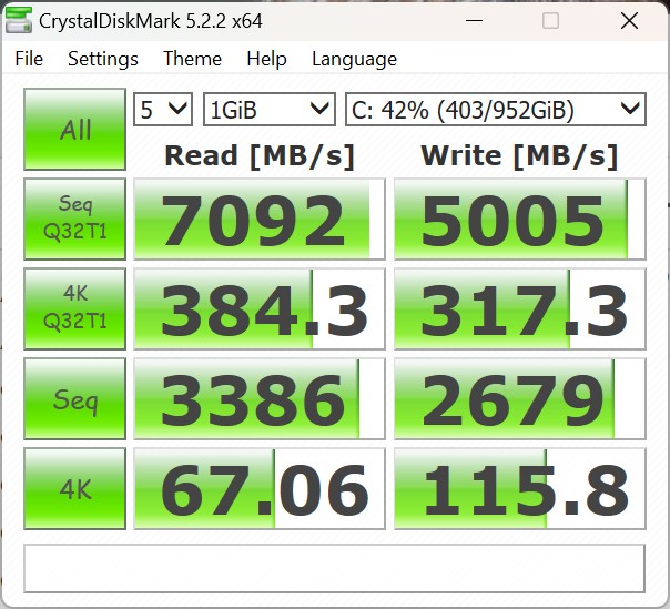 | Connectivity - USB 3.x / USB4 / TB - AS SSD Seq Read Test (1GB) | |