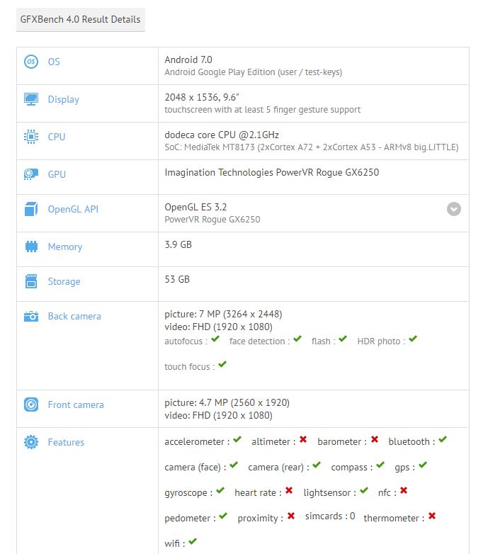 Bei der CPU setzt Asus nicht auf den Qualcomm Snapdragon 820-SOC sondern auf den MediaTek MT8173, der mit zwei Cortex A-72 Kernen und zwei Cortex A-53-Cores für ordentlich Power sorgen sollte. Beim Speicher zeigt sich Asus großzügig und bietet 64 GB, das Galaxy Tab S3 hat nur 32 GB. Der Arbeitsspeicher ist in beiden Fällen 4 GB groß. Die rückseitige Kamera bietet 7 Megapixel, vorne stehen 4,7 Megapixel zur Verfügung. Android 7.0 ist laut GFXBench vorinstalliert. Wann Asus das Tablet offiziell ankündigt, ist derzeit noch unbekannt.